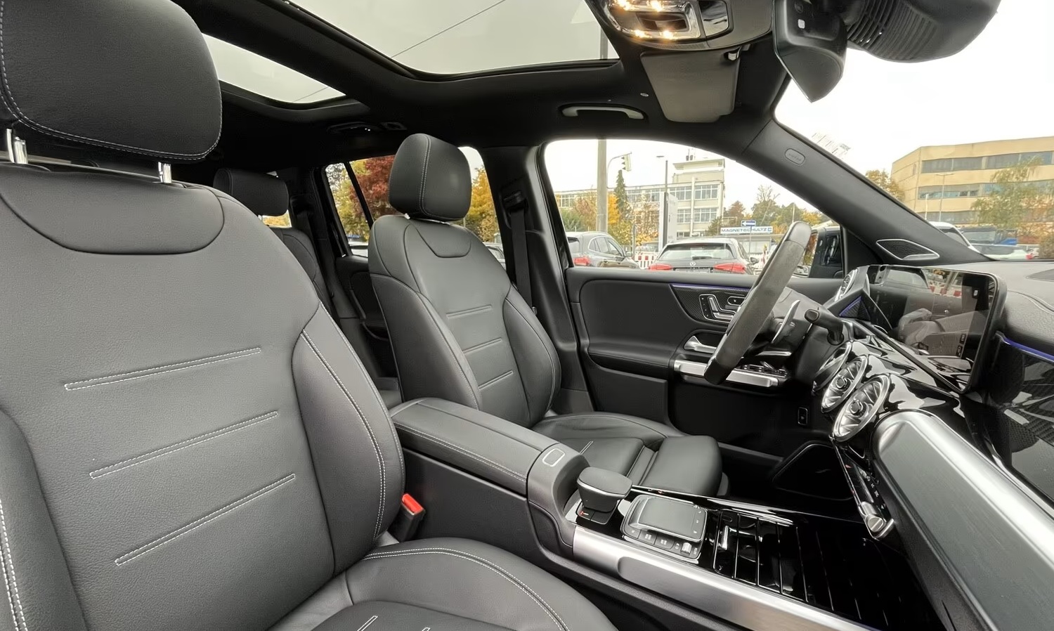 Reflektory LED MULTIBEAM Bluetooth Ładowarka indukcyjna Integracja ze smartfonem Android Auto Apple Carplay MBUX High-End Cyfrowe wskaźniki Wyświetlacz HeadUp Elektryczna klapa bagażnika Oświetlenie Ambiente Przyciemniane szyby Podsufitka w kolorze czarnym Klimatyzacja 3 strefowa Czujnik deszczu Czujnik światła Central Media Display MBUX Navigation Plus Remote Services Plus Smartphone Integration MBUX Multimediasystem Relingi dachowe